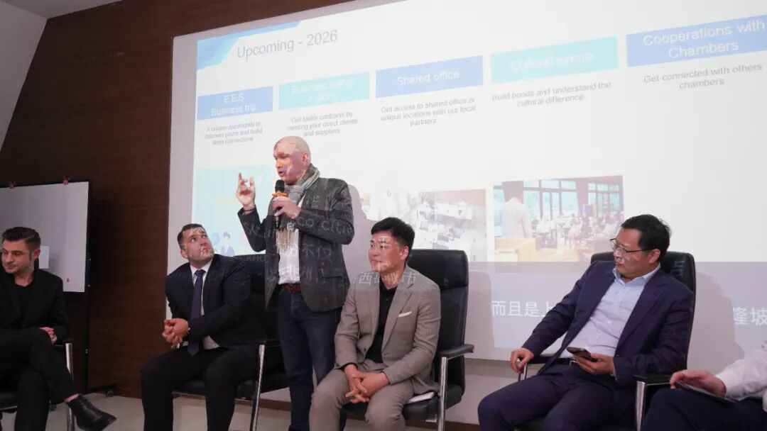 盛会现场,全董出海&盈科外服创始人叶小培、阿肯企业集团创始人Mr ZHENG等实战派领袖亲临开讲,OPmobility Lighting总裁Mustafa Yesilgoez、德国NAI Sofia Group执行董事Bjarne Bauer、法国CorpoRank创始人JC Gaffier等国际企业高管重磅助阵。盘活数万欧洲外商资源;同时吸引了水星家纺、上海建工、爱康企业集团、汉盾科技等国内优质企业领袖齐聚,形成了海外客商+行业专家+本土龙头的全维度资源矩阵。