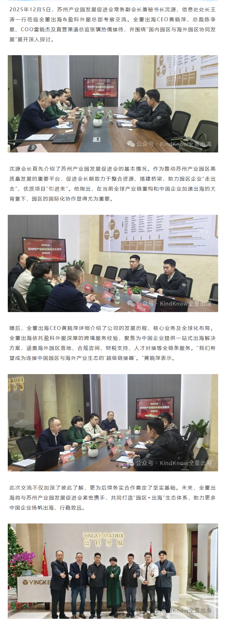 园区联动 赋能全球|苏州产业园发展促进会到访全董出海&盈科外服共商合作