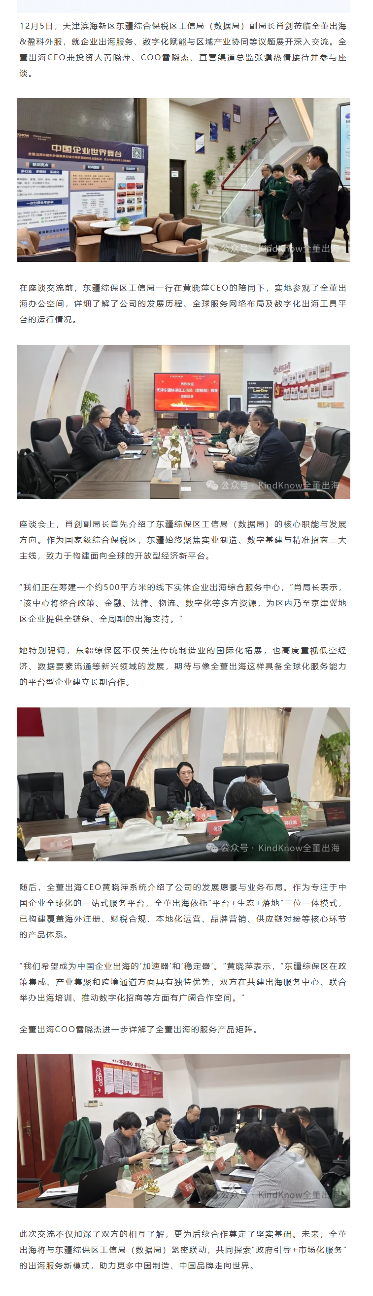政企共话出海新机遇|天津东疆综保区工信局副局长肖剑一行调研全董出海&盈科外服